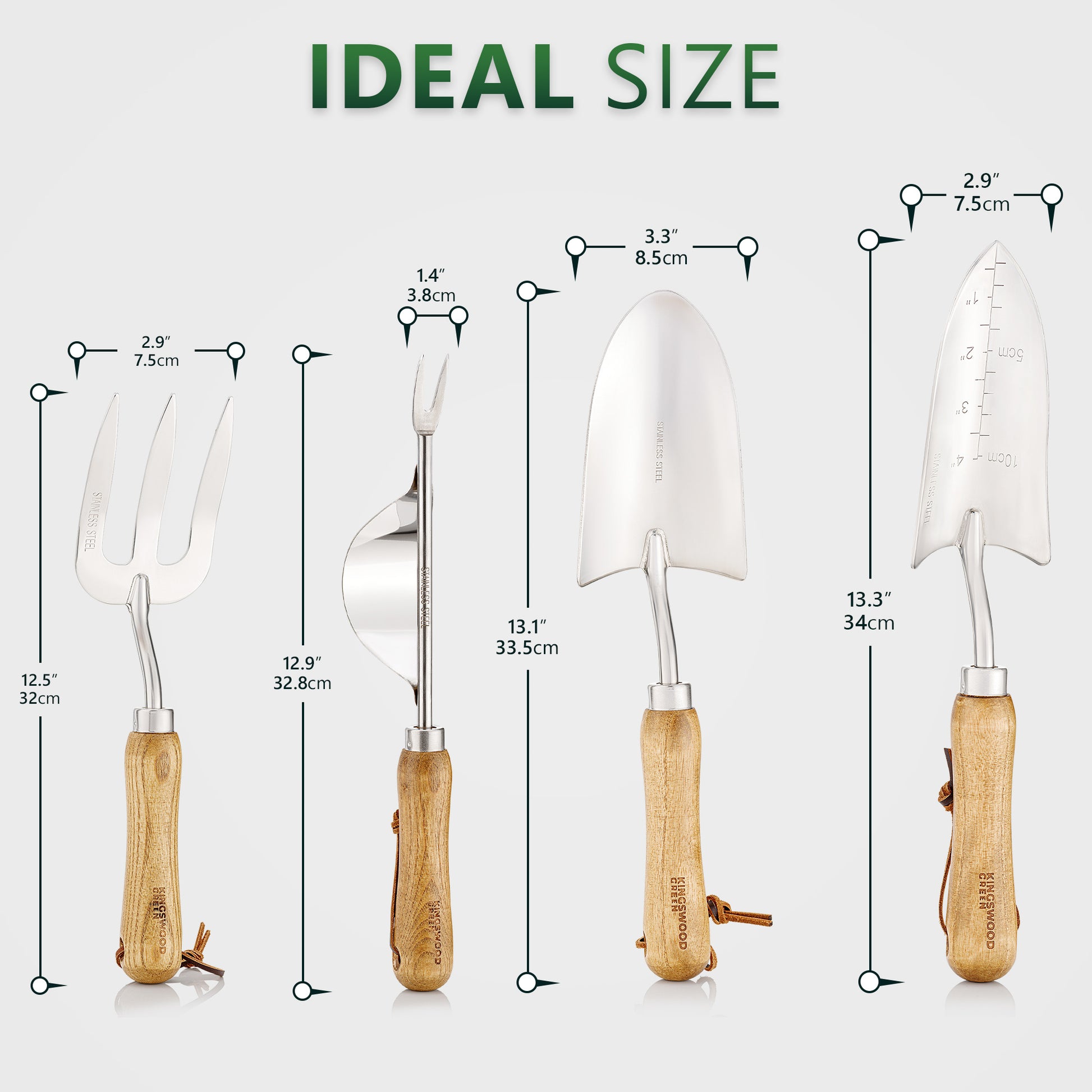 DURABLE CONSTRUCTION - made with stainless steel anti-rust metal and a hardwood weatherproof handle. These tools will last beyond most others and won’t weather done in strong UV, unlike silicone or plastic handles.