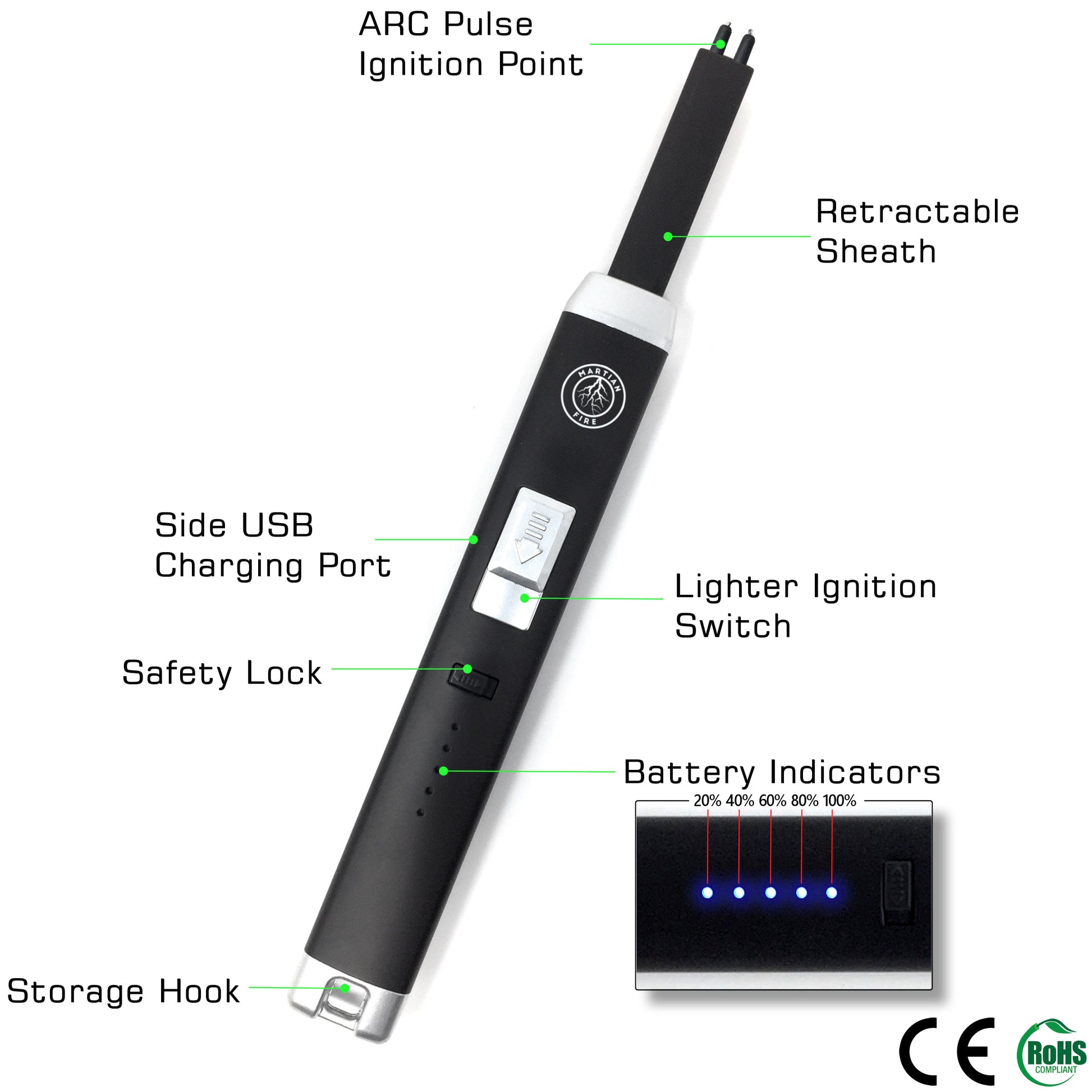 The windproof arc flame will light in any conditions, even in rain, and the long handle will make it easy for you to reach deep into those candle pits for lighting.